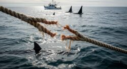 Fishermen describe sharks biting their anchor rope shortly after orcas closed in on their boat during a high tension marine encounter