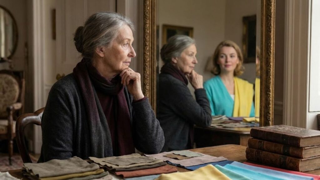 Psychologists note that colours with dull undertones often reduce the natural brightness of the face, making skin appear less lively. Shades like dusty grey, muted olive, or faded taupe can drain visual energy, especially when worn close to the face. These colours create heavy neutrals that soften contrast between skin, hair, and eyes, which is something our brains associate with aging. When contrast drops, facial features look less defined, leading to a flat contrast effect. Over time, this visual flattening can emphasize lines and shadows, resulting in a shadowed complexion that subtly signals age rather than vitality.